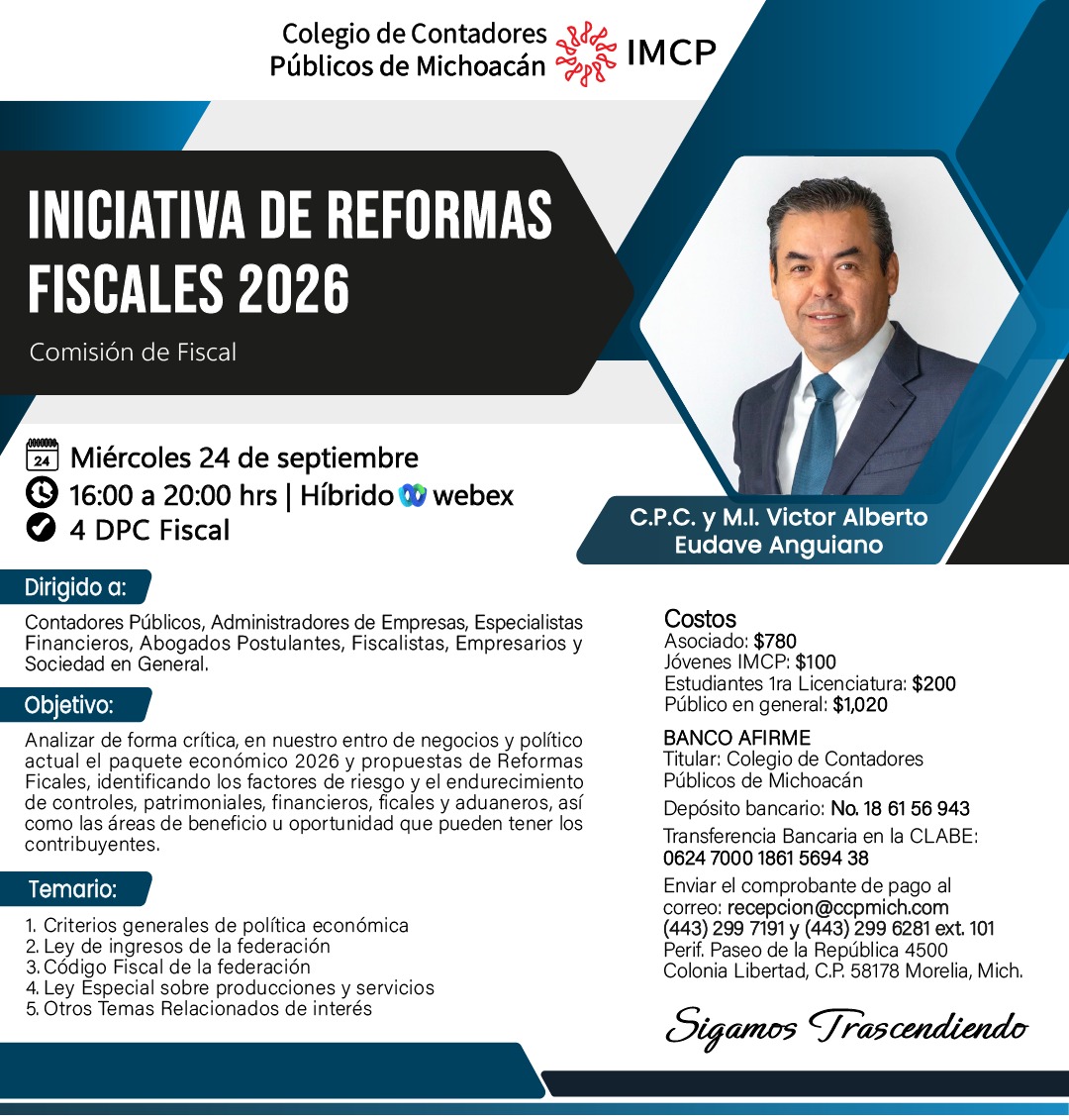 Expositores:C.P.C. y M.I. Víctor Alberto Eudave Anguano