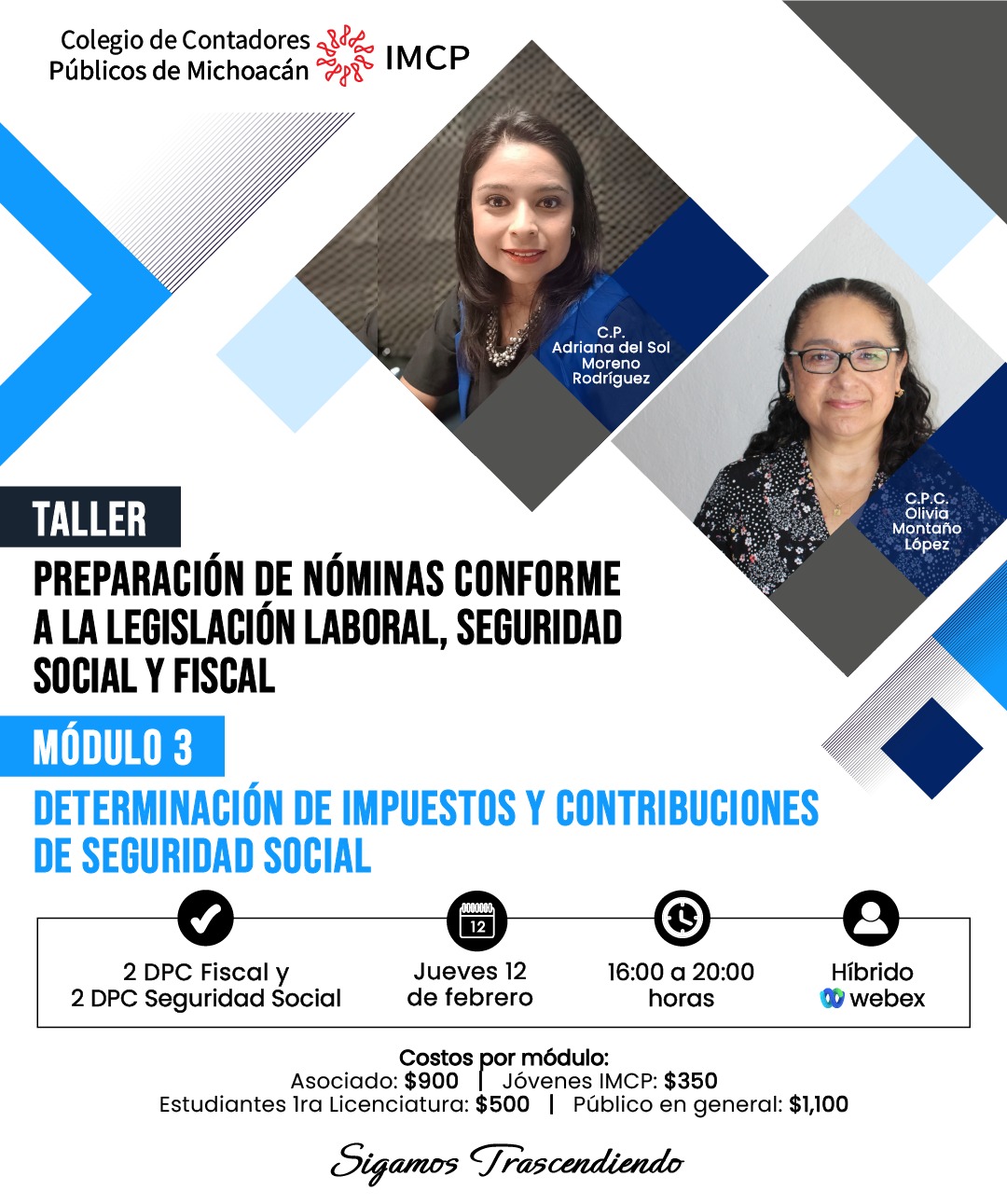 Módulo I: Taller en Excel para la determinación del SBCMódulo II: Aspectos fundamentales de la relación laboralMódulo III: Determinación de impuestos y contribuciones de seguridad social.Módulo IV: Adecuado timbrado de la nómina