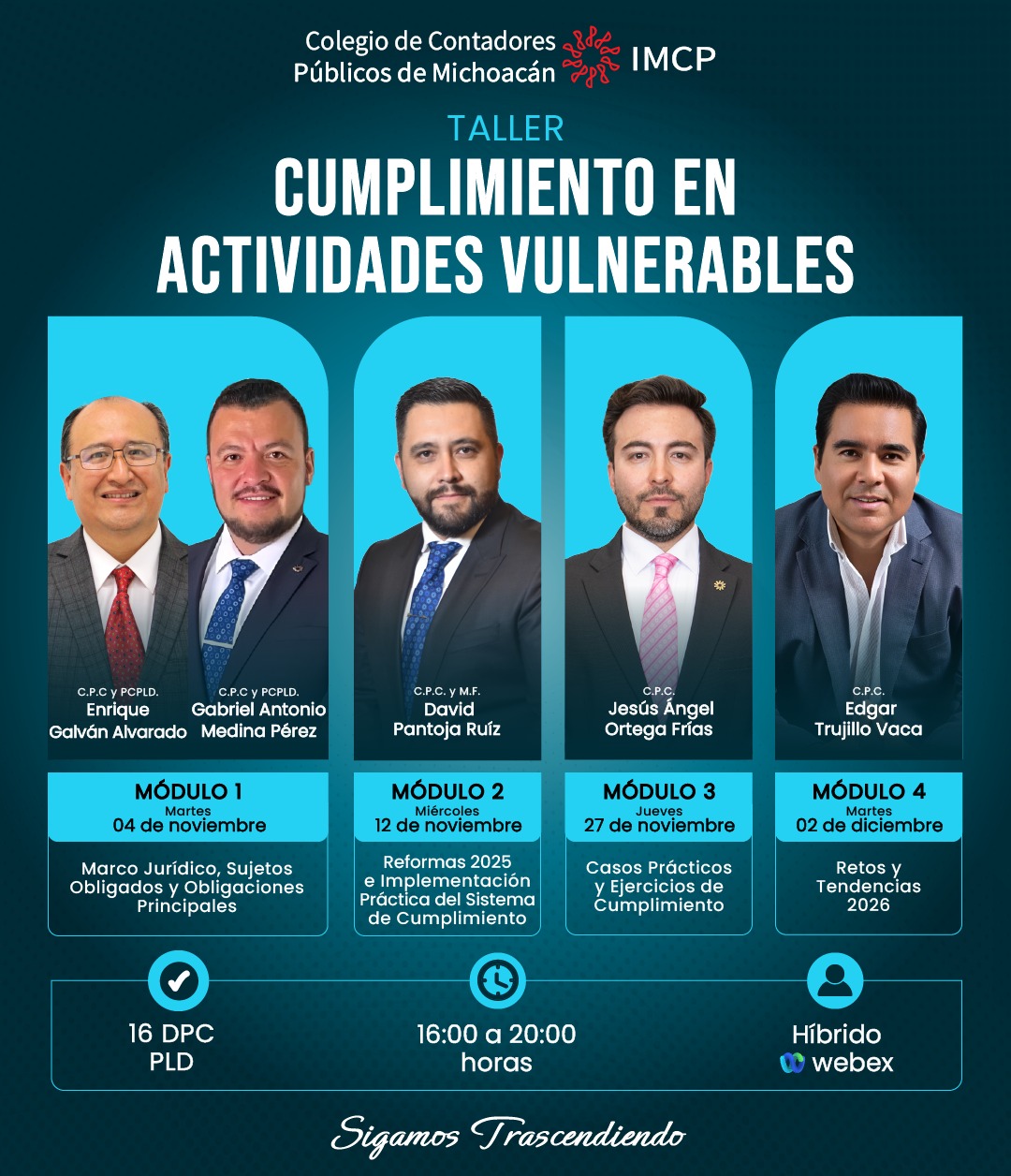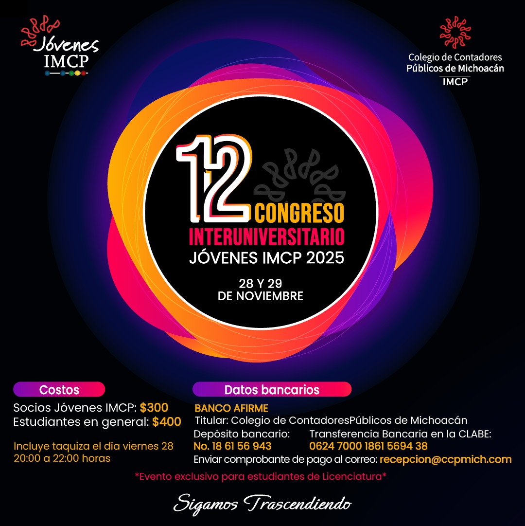-Historia de éxito empresarial-Futuros contribuyentes, cultura fiscal para jóvenes como tú-AI, ¿Aliado Estratégico del Contador?-Hacia una cultura de cumplimiento y protección social en México-La responsabilidad y el ejercicio profesional del fiscalista en México-Mas allá de los números: liderazgo y habilidades que marcan la diferencia.